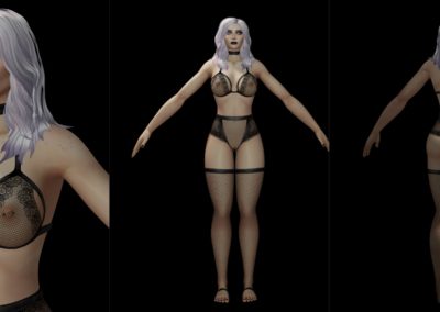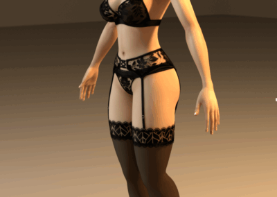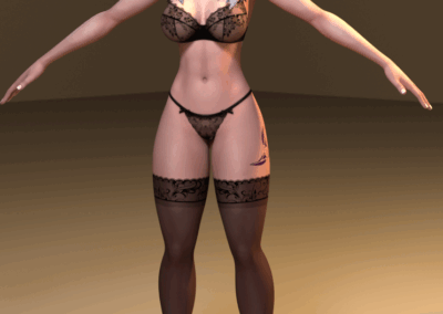 Basic stockings that are painted directly on the model cost 50 euro. This method requires no rigging, but means that the stockings ‘sock’ area will just be individual toes instead. This is the method I usually do.